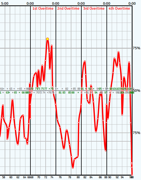 Here is what it looks like when two teams play 25 minutes of basketball in which every single event can swing the game in favor of one team or the other: