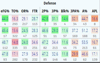 Look at that 2 point percentage defense! I’m swooning!
