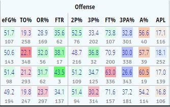 The other thing that jumps out is the free throw rate - his teams draw a lot of fouls. And again, that stood out in the NIT, where a constant barrage of high pick and rolls and passing to cutters moving downhill towards the basket led to a ton of contact near the hoop.