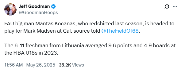 We’ll get to what Mantas Kocanas brings to Cal shortly, but let’s quickly check in on the status of Cal’s 2025-26 roster more generally. For those who needed a reminder, here’s the quick summary: