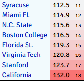 The gap between Cal’s defense and the 2nd worst defense in the ACC is about the same as the gap between Duke and everybody else offensively. Cal’s defense has been so bad that Cal has soundly lost three games despite three games of excellent offensive production.