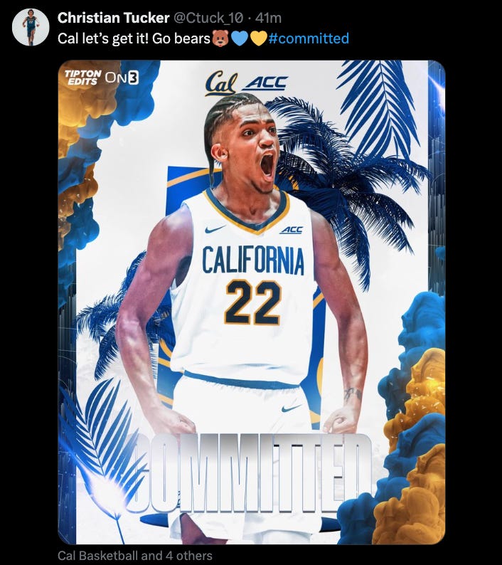 But now with five commits from Tucker, Campbell, Lee Dort (Vanderbilt big), BJ Omot (North Dakota forward) and Jeff Nwankwo (top JUCO wing), Cal does now have five capable players on their roster. The Bears have at least avoided doomsday. They have a squad for bigger names to join up with.