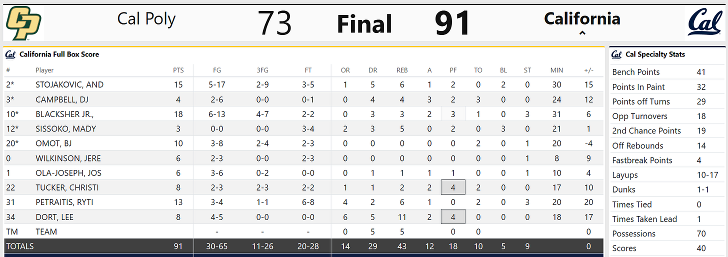 Men's Basketball Insta-Recap: Cal Beats Cal Poly, 91-73