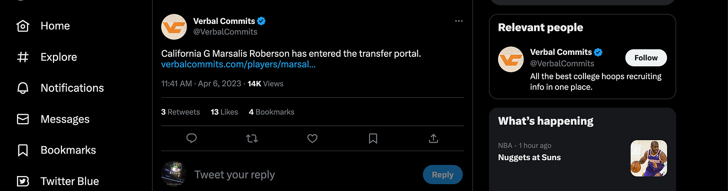 As Mark Madsen makes his transition to the recruiting trail for the 2023-2024 season, the amount of scholarships that he’s working with is becoming more clear. Sam Alajiki, Lars Thiemann, Joel Brown, Kuany Kuany, Jarred Hyder and now Marsalis Roberson along with Obinna Anyanwu have entered the transfer portal. This continues the mass roster turnover from the prior coaching administration, in the pursuit of bringing Cal basketball back to bigger heights.