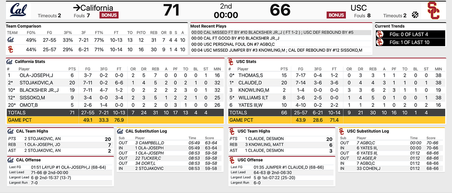 Cal Men's Basketball vs. USC Live Fan Chat and Game Thread: Bears Beat the Trojans in LA, 71-66