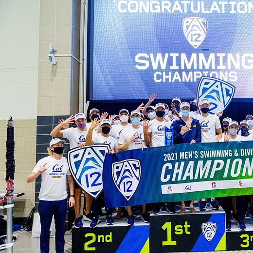 After dominating at the Pac-12 Championships a few weeks ago, winning 17 of 18 swimming events en route to a 4th consecutive Pac-12 team title (which was also held in 2020 before everything stopped), the Golden Bears will send 16 swimmers to this meet in Greensboro, NC. Other than the one relay-only swimmer, each Cal Bear can race in 3 individual events as well as 4 of 5 relays. The goal for every prelim session is to place as many Cal swimmers as possible into “scoring position” — top-16 in an event to score points, but preferably top-8 to make the A-Finals. The 5 relays events count as double points compared to the individual events.