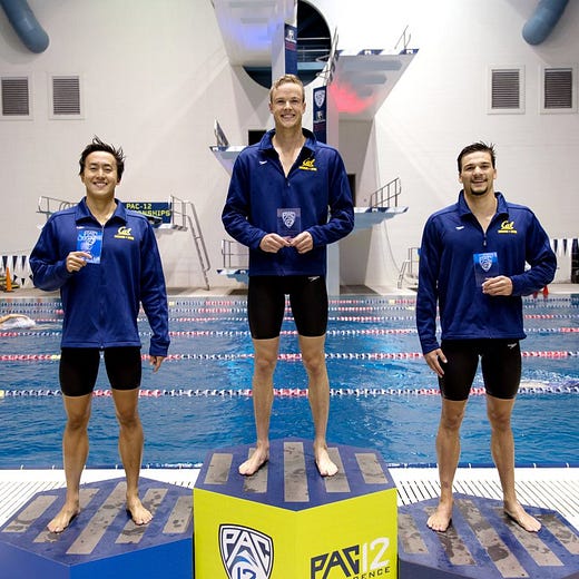 Congratulations to the entire Cal menβs swimming and diving team for such a dominant showing at the Pac-12 championships. From top to bottom, so many Cal Bears posted their season if not career personal bests this week. All the hard work is starting to pay off.