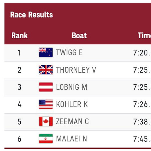 Rowing - both Kara Kohler (USA) and Gennaro di Mauro (Italy) just missed out on Single Sculls A-Finals with 4th places in semifinals