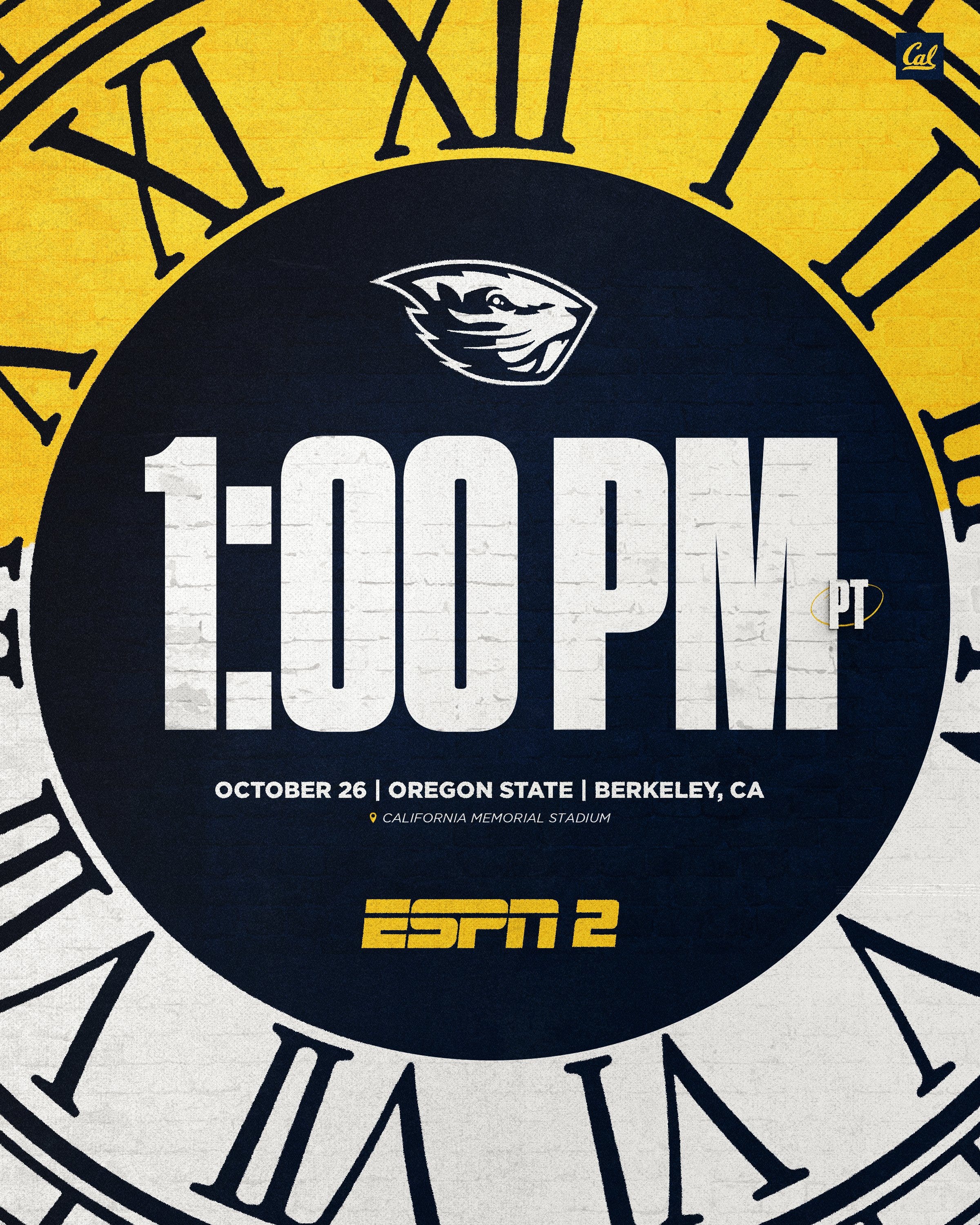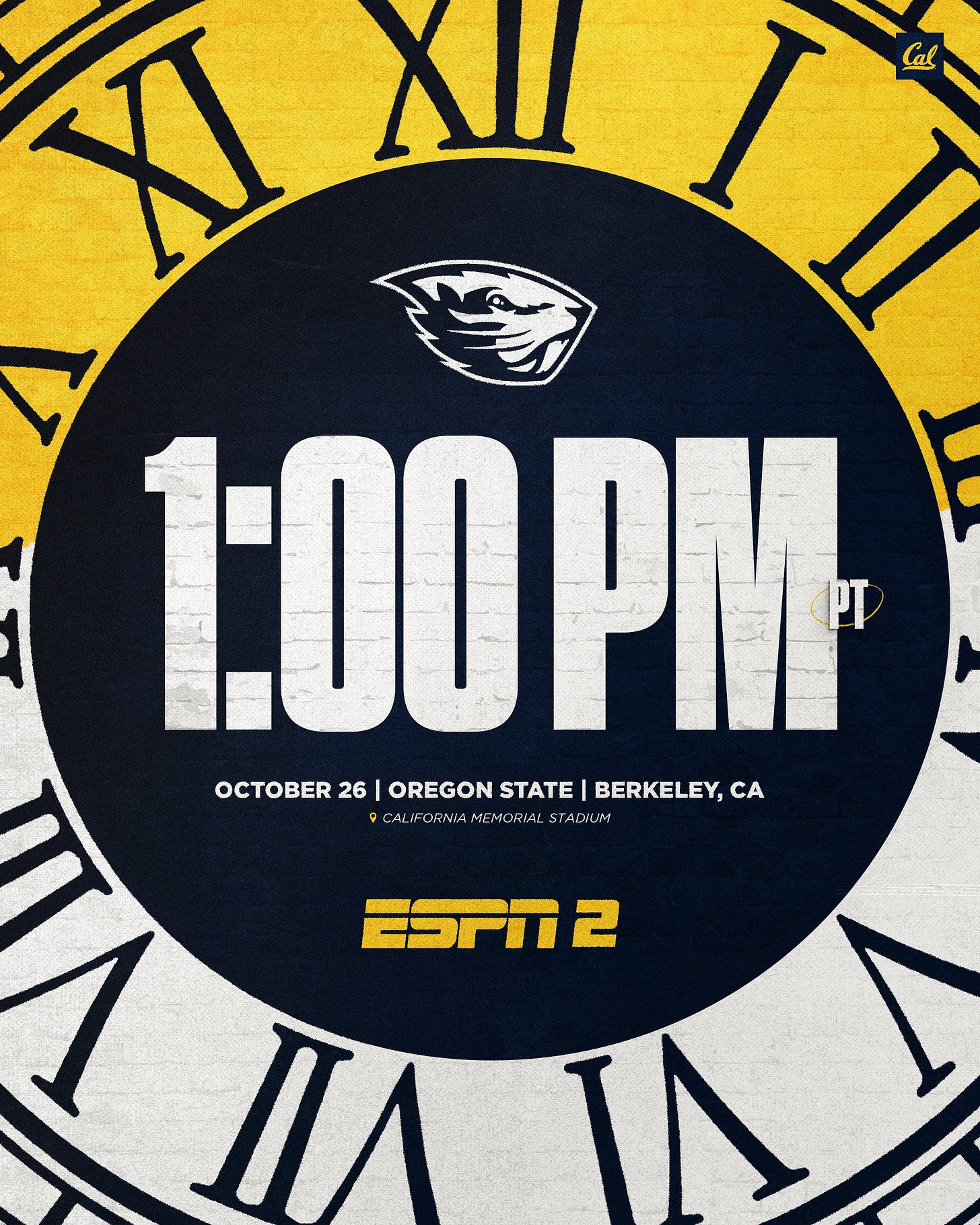 The Cal v. Oregon State football game will kick off on Saturday, Oct. 26, 2024, at 1 p.m. Pacific, according to an announcement from the Atlantic Coast Conference and Cal Athletics Monday morning. The game will air on TV on ESPN2.