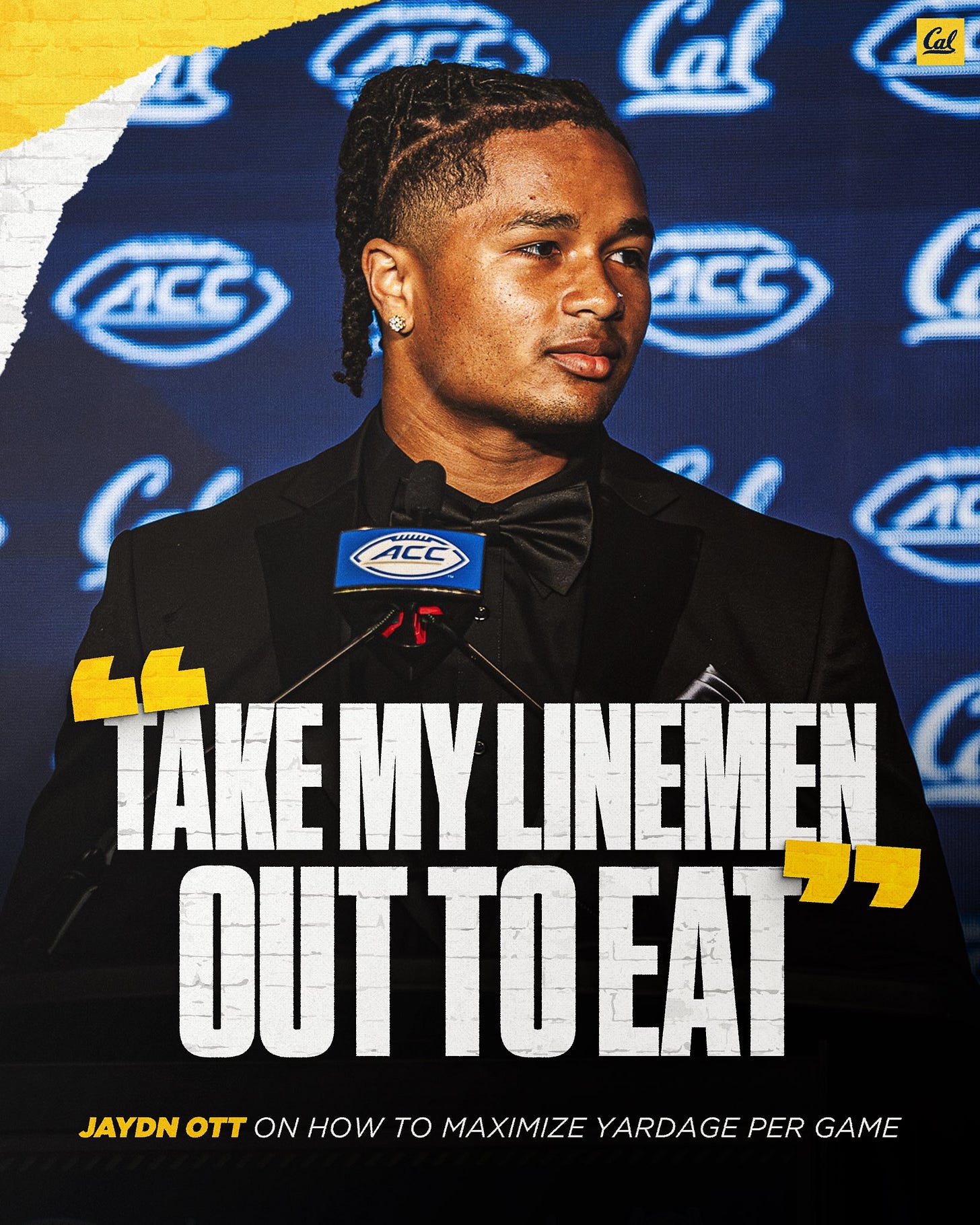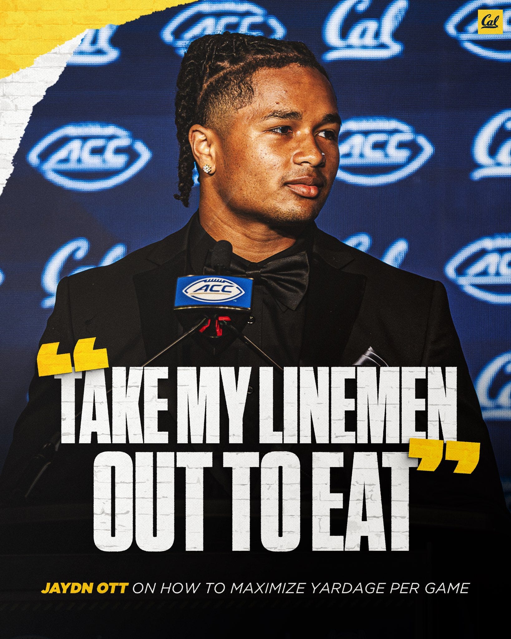 Cal RB Jaydn Ott on how to maximize yardage: "I take my linemen out to eat."