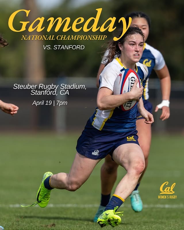 Cal women’s rugby will also be playing Stanford tonight for a national championship, tonight at 7 pm.