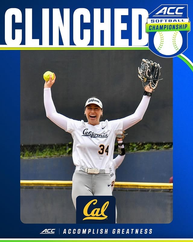 With their win against Syracuse in game one of the series, Cal softball clinched a spot in the ACC championship in their inaugural season in the conference. Taking the #9 seed, the Bears are set to face the #8 seed Georgia Tech in the first round of the tournament on Wednesday. The winner of that game will move on to the quarter finals against #1 seed Florida State Thursday.