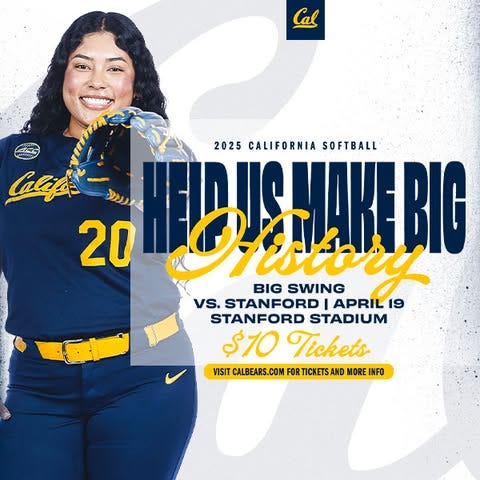 After rebounding against St Mary’s with a pair of wins in a double header earlier this week, the eyes of the blue & gold faithful turn towards Palo Alto for Cal’s rivalry match against Stanford. For the final game of the Big Swing series (Saturday), Cal and Stanford Athletics look to make history by breaking the NCAA softball attendance record of 12,566. “I feel definitely excited,” said Quiroga. “They’re doing great, don’t get me wrong, but…it’s a true test to me.” The Stanford Cardinal enter the series ranked 15th, the third ranked conference opponent the Bears have faced this season. With Cal hungry for another conference win, and Stanford looking to maintain their ranking as we enter into the final part of the regular season, Big Swing is shaping up to be an exciting rivalry week. Tickets for the historic record breaking game on Saturday can be purchased here.