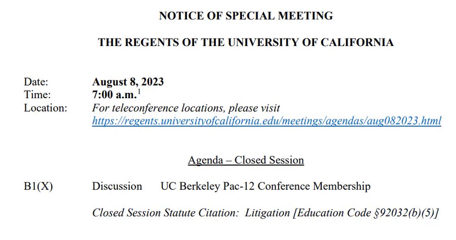 The UC Regents are scheduled to meet Tuesday morning to discuss what happened with the Pac-12 and the best way for Cal to find a home in the new order.