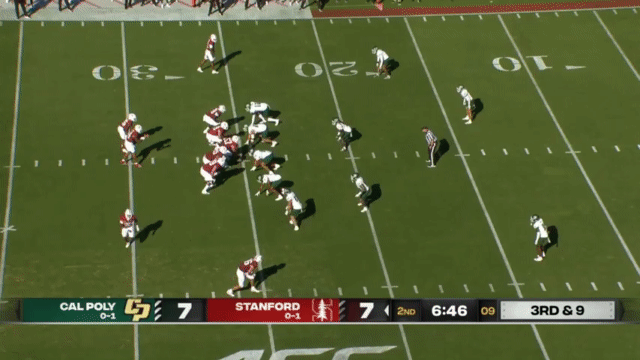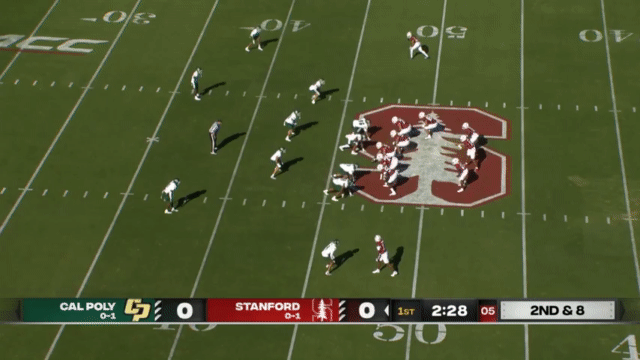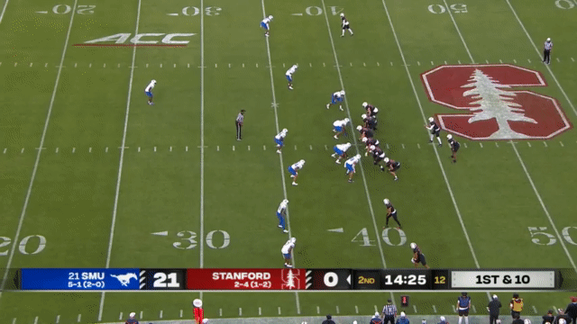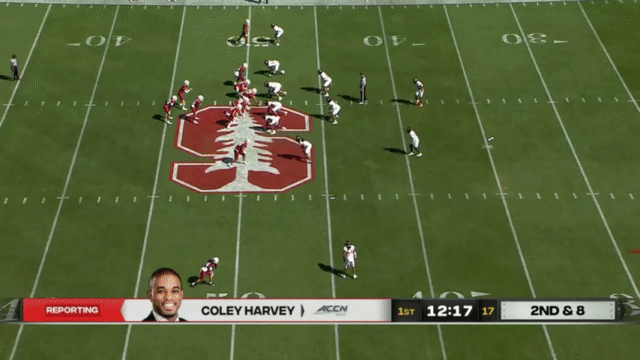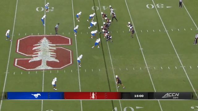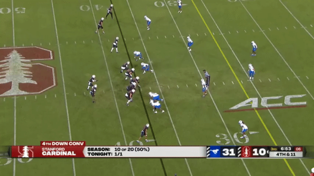Stanford hasn’t been particularly adept at blocking this season. PFF gives Stanford a 58.9 grade in pass blocking and a 53.4 grade in run blocking (Cal’s are 62.8 pass block and 52.8 run block, for comparison), and so Stanford will often use motion and misdirection to try to give their running QBs space: