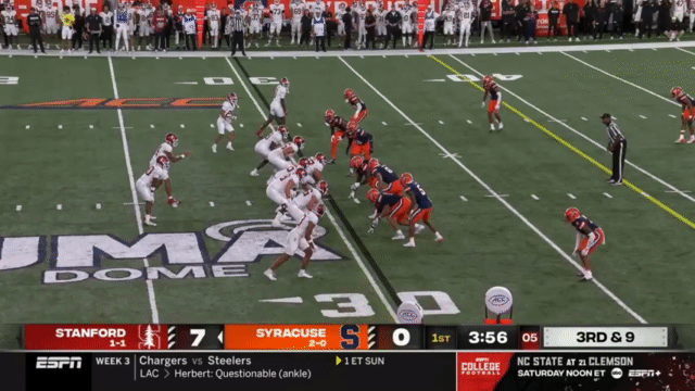 I can’t emphasize enough how obvious it will be who the target is if the game is close in the 4th quarter. It’s Ayomanor. It’s always Ayomanor. You’d have to pull a real Syracuse to leave Ayomanor in single man coverage to the outside after Ayomanor has caught 5 straight catches on that drive. The ball is going to Ayomanor. The QB is going to lob it up and trust Ayomanor to catch it.
