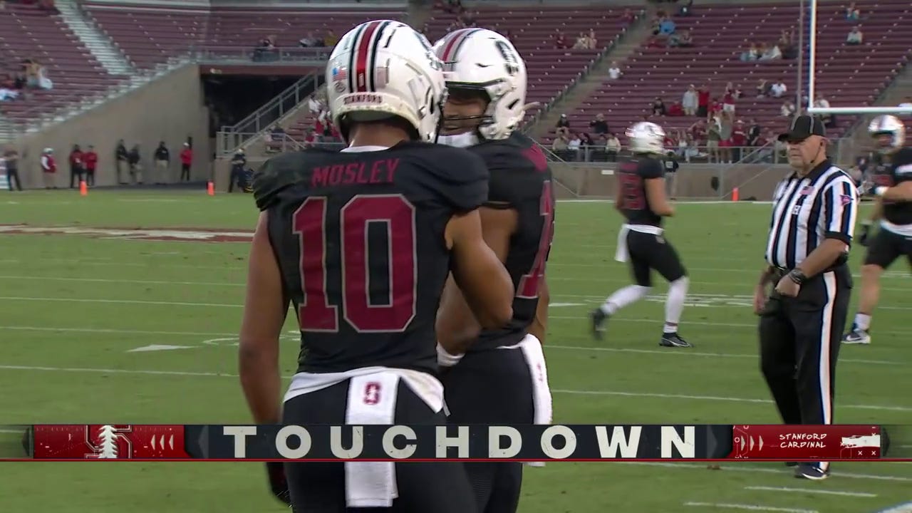 What was I saying? Oh yeah, something about Stanford. With Mosley often left in single man coverage, he only needs to beat one defender. Here he come up clutch with this great catch to keep Stanford alive: