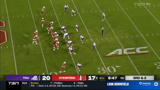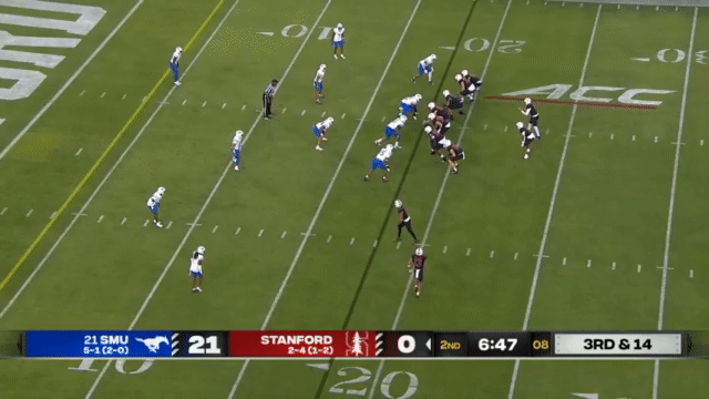 When Stanford is desperate for a play, Ayomanor is the first and only target. The QB will lob it up and trust that Ayomanor is down there somewhere: