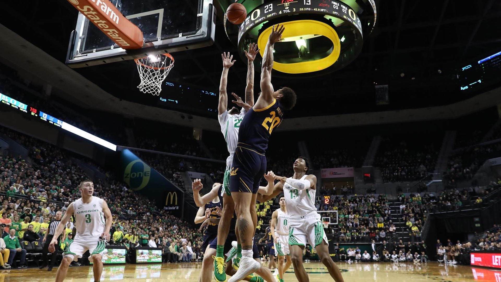 Oregon, who never once trailed, shot 59.6%, the seventh time this season California allowed a team to shoot above 50%. Five Ducks ended the game scoring in the double-digits, led by 20 points from senior guard Payton Pritchard. Only two California players scored 10 points or more: sophomore guard Matt Bradley put up 15 points while junior Grant Anticevich contributed an even 10.