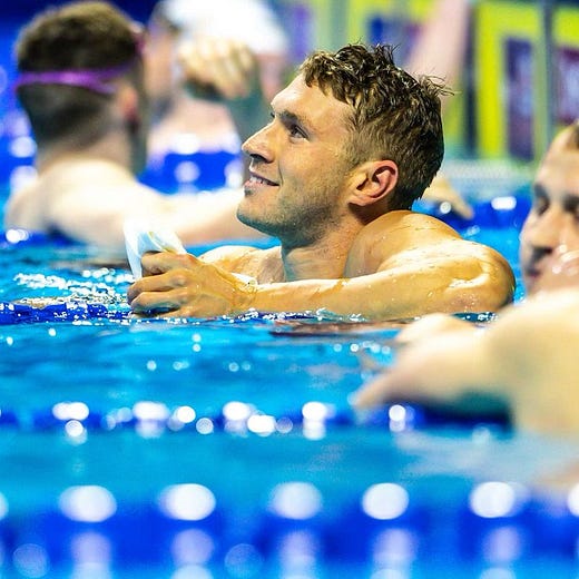 I will just go ahead and assume that as the 2nd place finisher in Men’s 200 Back that Bryce Mefford will make Team USA (even though that technically will require a couple more swimmers to qualify for multiple events — which will surely happen with Caeleb Dressel for 100 Fly and/or 50 Free or fellow Florida Gator Bobby Finke for 1500m Free).