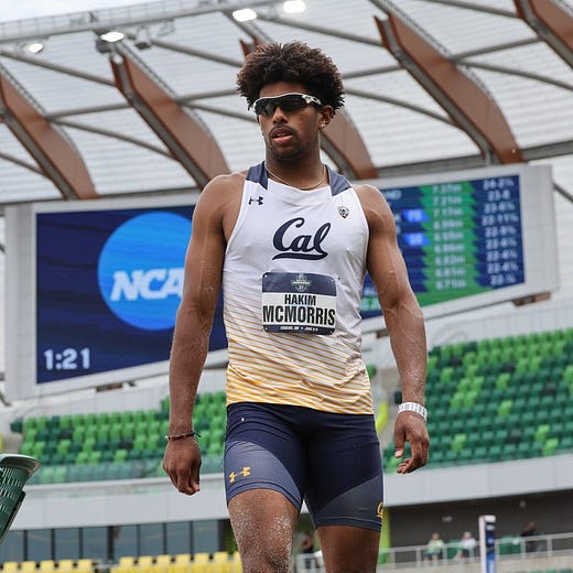 Hakim McMorris did well (top 4) in 4 out of the 10 decathlon events (100m, long jump, 400m, and 110m hurdles) to finish 19th overall. Despite Calโs prowess in the throwing events (not to mention his brother Malik being a Cal weight tosser in addition to being a football player), Hakim can certainly improve on shot put (13th), javelin (18th), and discus (20th).