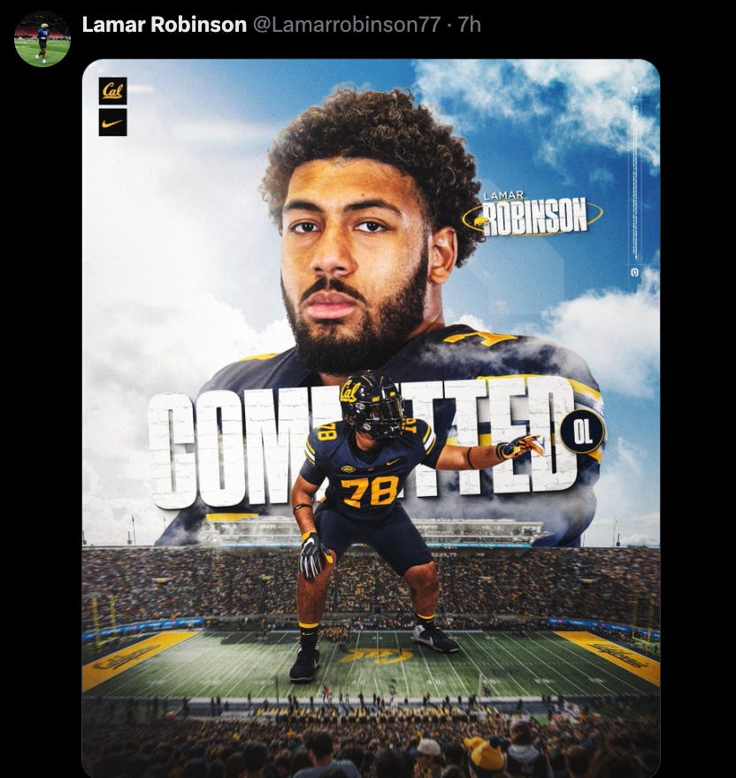 The California Golden Bears needed new linemen to fix their most disappointing unit of 2024. This weekend was a huge step in the right direction, with three huge commits. The latest one was Lamar Robinson.
