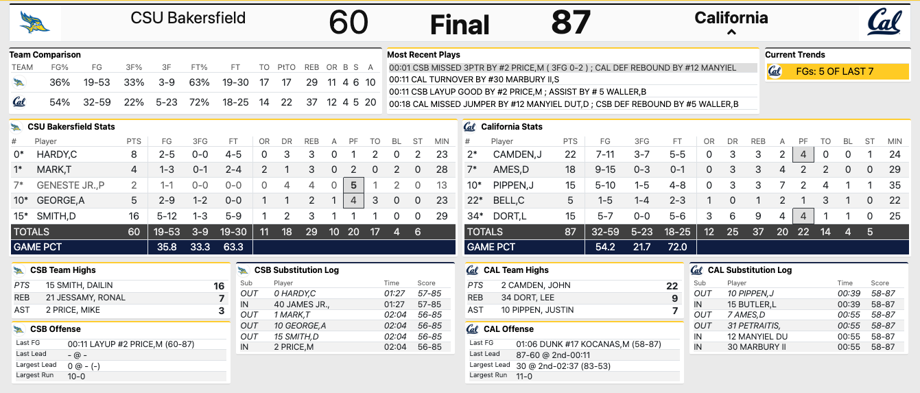 Cal v. Cal State Bakersfield Basketball Live Fan Chat & Game Thread: Bears Win 87-60