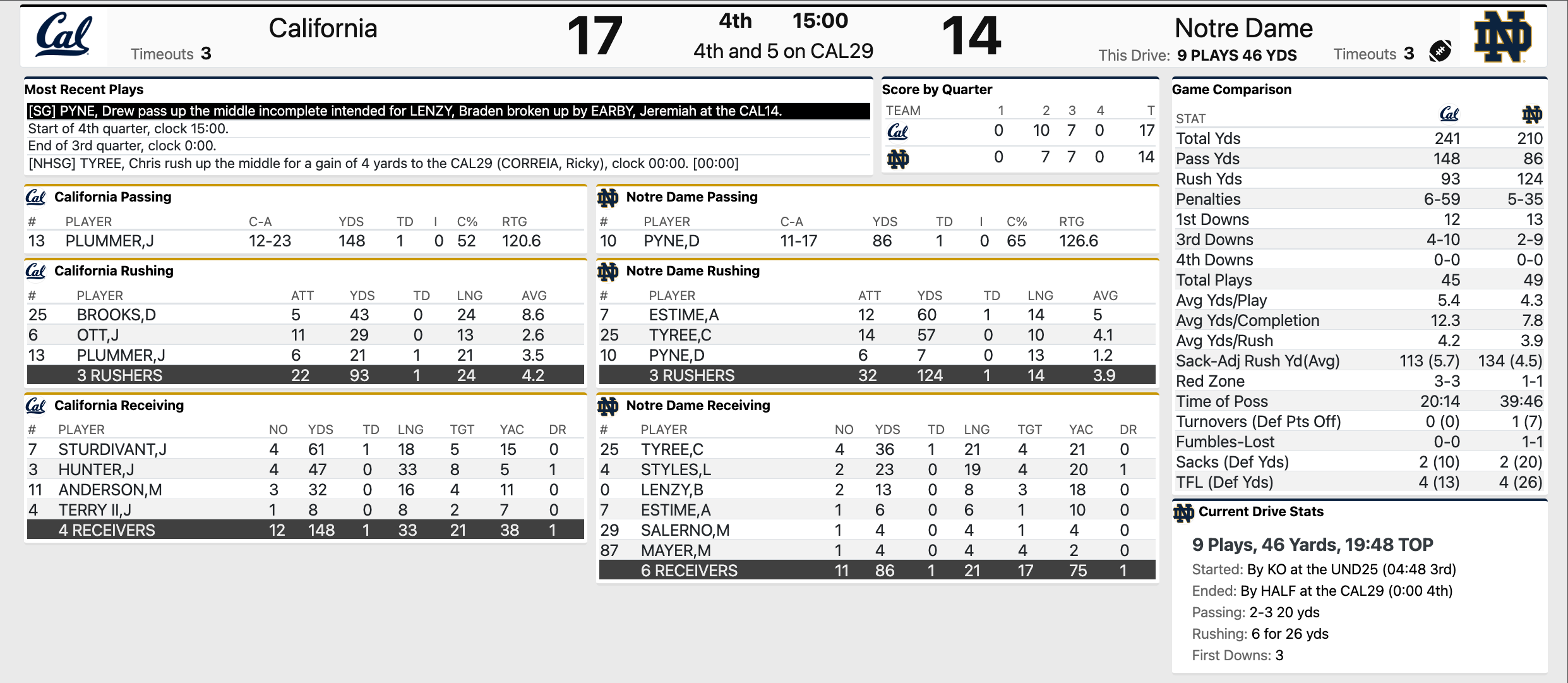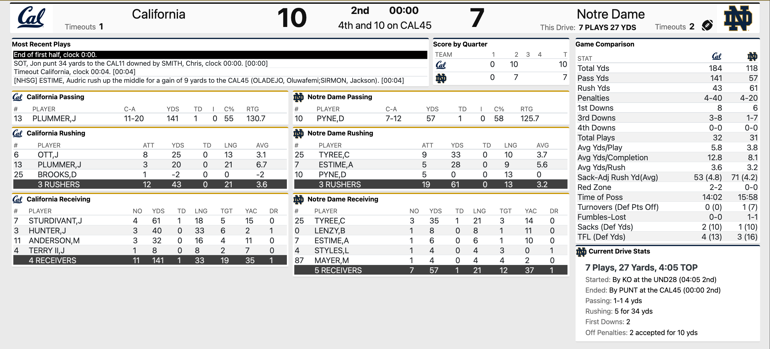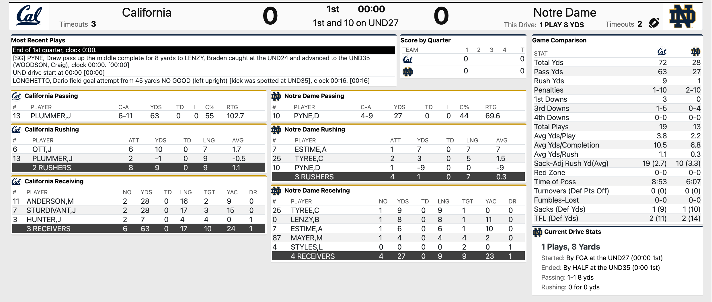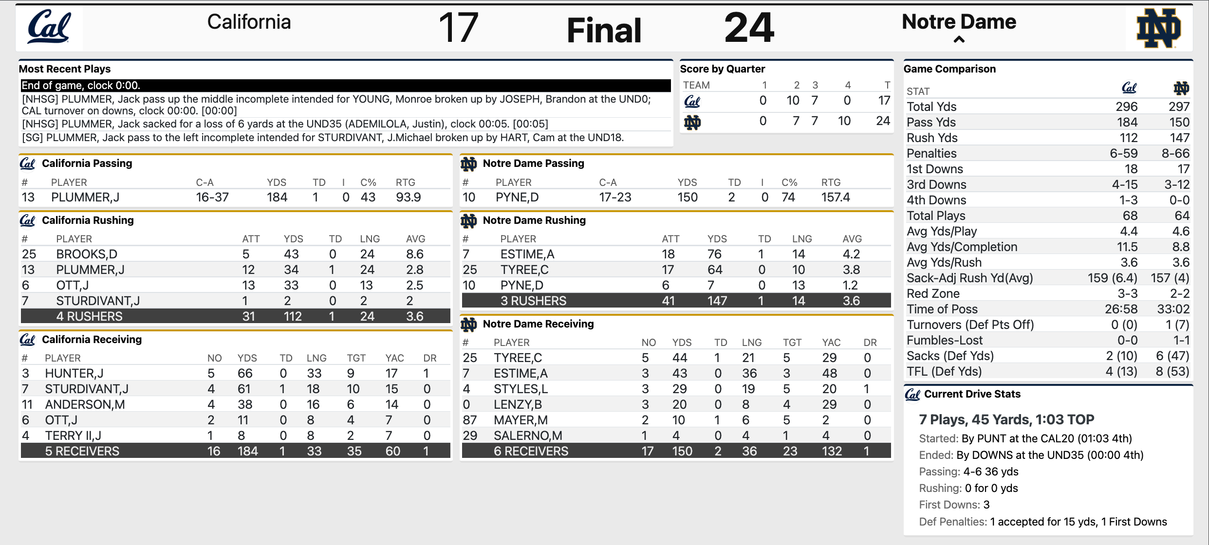 Good, close game with two teams that have issues. Cal hung in there on a hot, humid day to a sold out crowd, a still talented ND team (minus the QB) and in their house.