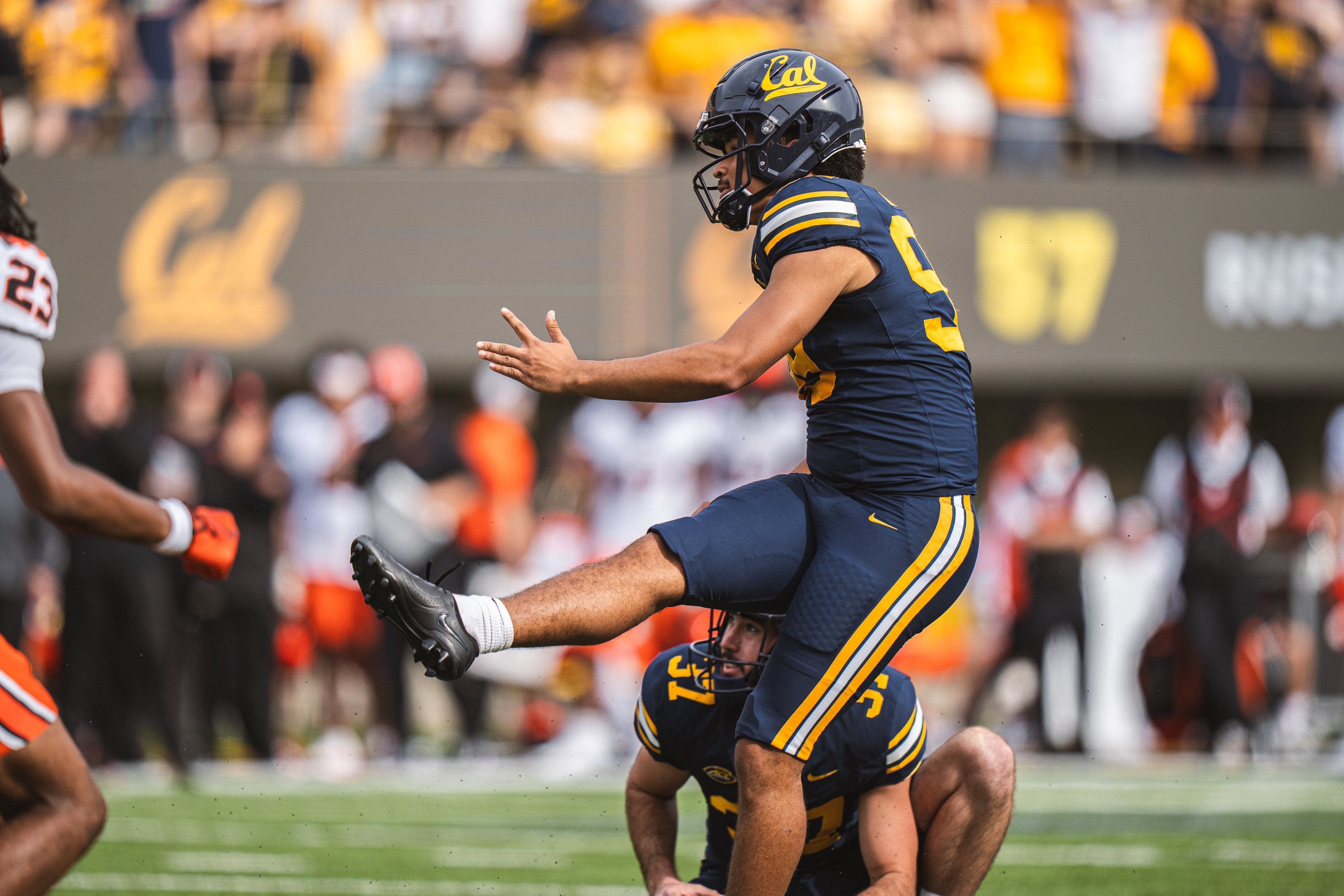 California kicker Derek Morris made a season-high five field goals, going a perfect five-for-five on the day. Morris' five completed kicks tied a school record.