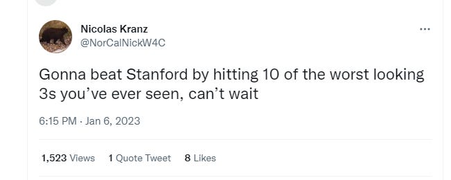 Stanford’s bad defense, plus Cal’s excellent long-range shooting, made this for a fun night for the Golden Bears and their fans.
