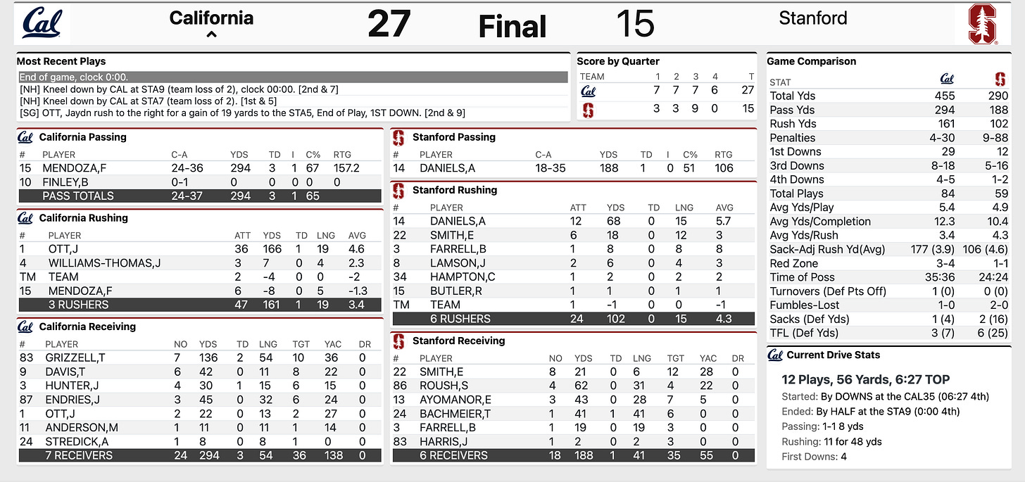 Cal vs. Stanford Football, Live Fan Chat: Bears Beat the Cardinal, 27-15, and Keep the Axe!