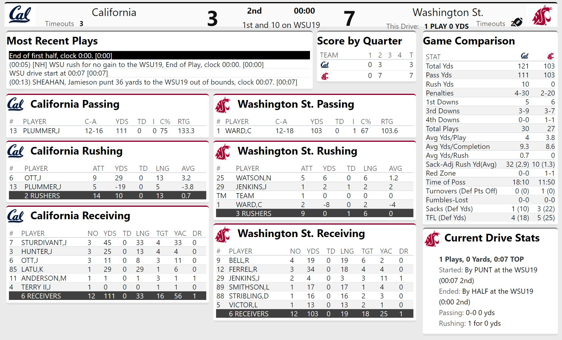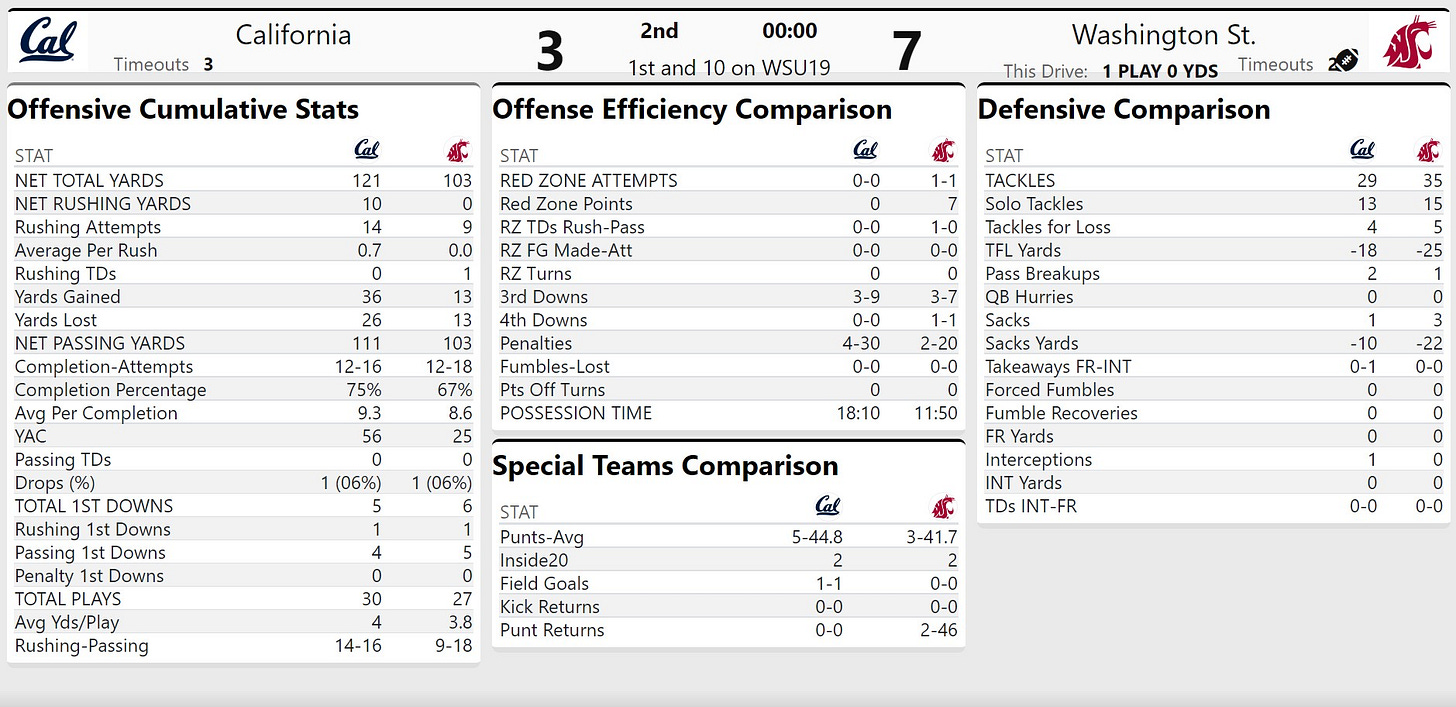 3 and out for Wazzu, Cal has a 2 minute drill should they field the punt cleanly