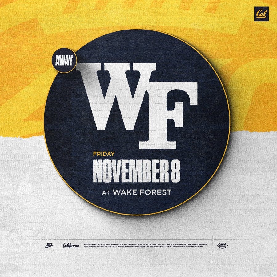 Cal will visit Wake Forest on Friday, November 8