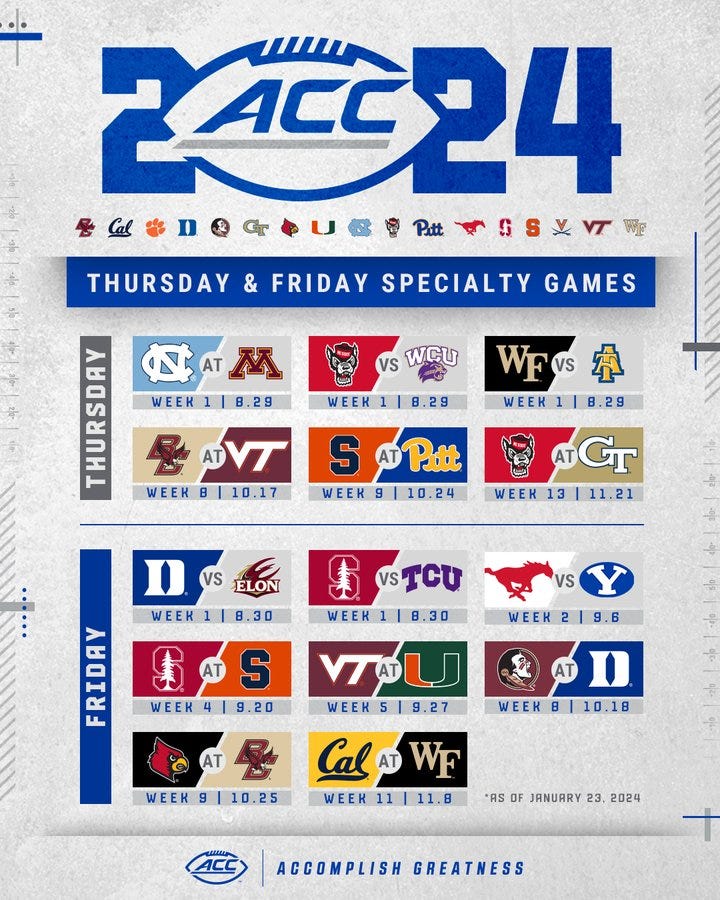 The ACC released their weekday slate of games for the 2024 season. The California Golden Bears will get one such matchup on the road against the Wake Forest Demon Deacons. This game is set for Friday, November 8th.