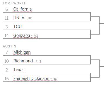 ESPN projects Cal as a 6 seed and is giving us a healthy dose of Texas basketball:
