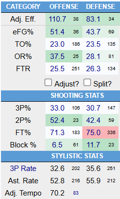 Our Computer Overlords Predict: Torvik sez Cal 71, Mississippi State 70. I will say that I am slightly more optimistic than a coin flip because I do think that this is a solid stylistic match-up for Cal. Drawing a team that isn’t great at forcing turnovers, doesn’t draw a ton of fouls, and doesn’t emphasize stopping threes is reasonably lucky. But MSU is absolutely good enough to win this game, even if you might think it shades 60-40 in Cal’s favor. It’s gonna be tough.