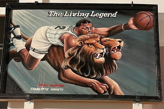 It was still mid-afternoon when I exited the arena, so I made a beeline for one of my favorite places on the UCLA campus. I’m talking about the Fowler Museum, which is free of charge to visit and offers a rotating selection of art and artifacts from around the world. I very much enjoyed an exhibit called Aboriginal Screen-Printed Textiles from Australia's Top End, especially because it reminded me of the times I visited my uncle in Sydney. I also had a good time viewing hand painted signs by Kwame Akoto, an artist who lives in Ghana. He brought back some ‘90s NBA memories for yours truly with a humorous depiction of Larry Johnson. Even though the Bears came up short, I felt privileged to experience everything I did on this particular Sunday.