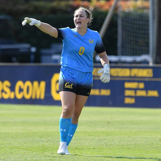 Readers may or may not recognize Makena Smith as the current Cal Softball star. As the starting catcher, Smith is the offensive team leader in homers (8 in the 2021 season) and average (0.481 back in the shortened 24-game 2020 season, more normal 0.327 in 2021). While it is not that shocking that someone with her athletic ability could play soccer goalie at the Pac-12 level, it was perhaps more surprising that she even had the spare time to maintain her club-level soccer skills while being a student-athlete at Cal.