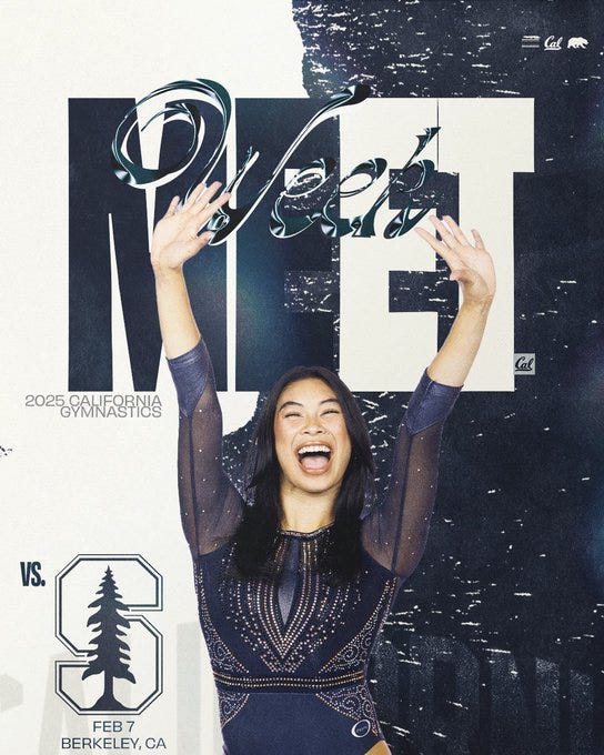 Mya and eMjae are my two favorite Cal athletes this year (with Ella very close behind) and a gym meet is so much fun. Please get down there and support the team!