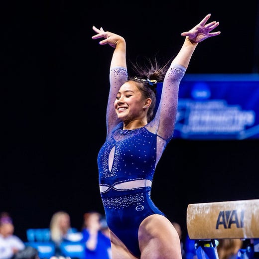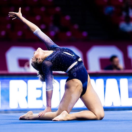 While it would be shocking for host Oklahoma to falter, stranger things have had happened in the postseason. If Cal can apply some scoreboard pressure on Minnesota before their beam rotation, the Golden Bears could advance over the Golden Gophers without necessarily being in their top form. More likely though, Cal will just need to perform to the peak of their ability and win another NCAA National Championship berth outright over the best from Minnesota and Arkansas.