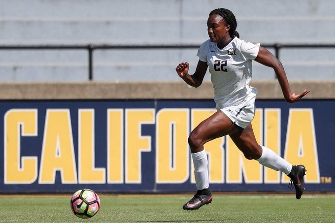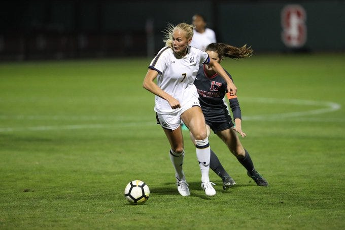 At Cal: 2014-17, played as a defensive midfielder, 4 goals in 45 matches. She missed the entire junior season (2016) due to injury.