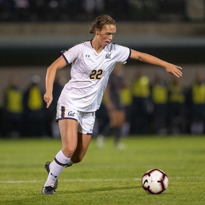 At Cal: 2017-2019, played as a midfielder, 1 goal and 3 assists in 50 matches. She graduate-transferred to Georgetown and played there in 2020.