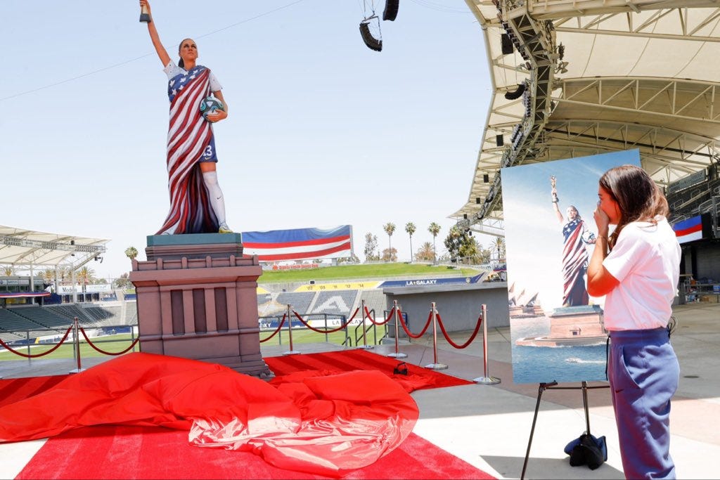 The statue was unveiled at the USWNT press event in Carson, California in late June.