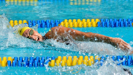 Isabelle Stadden raced against a strong field in the 100y Back A-Final. Despite a new personal record, the Cal sophomore only placed 7th.