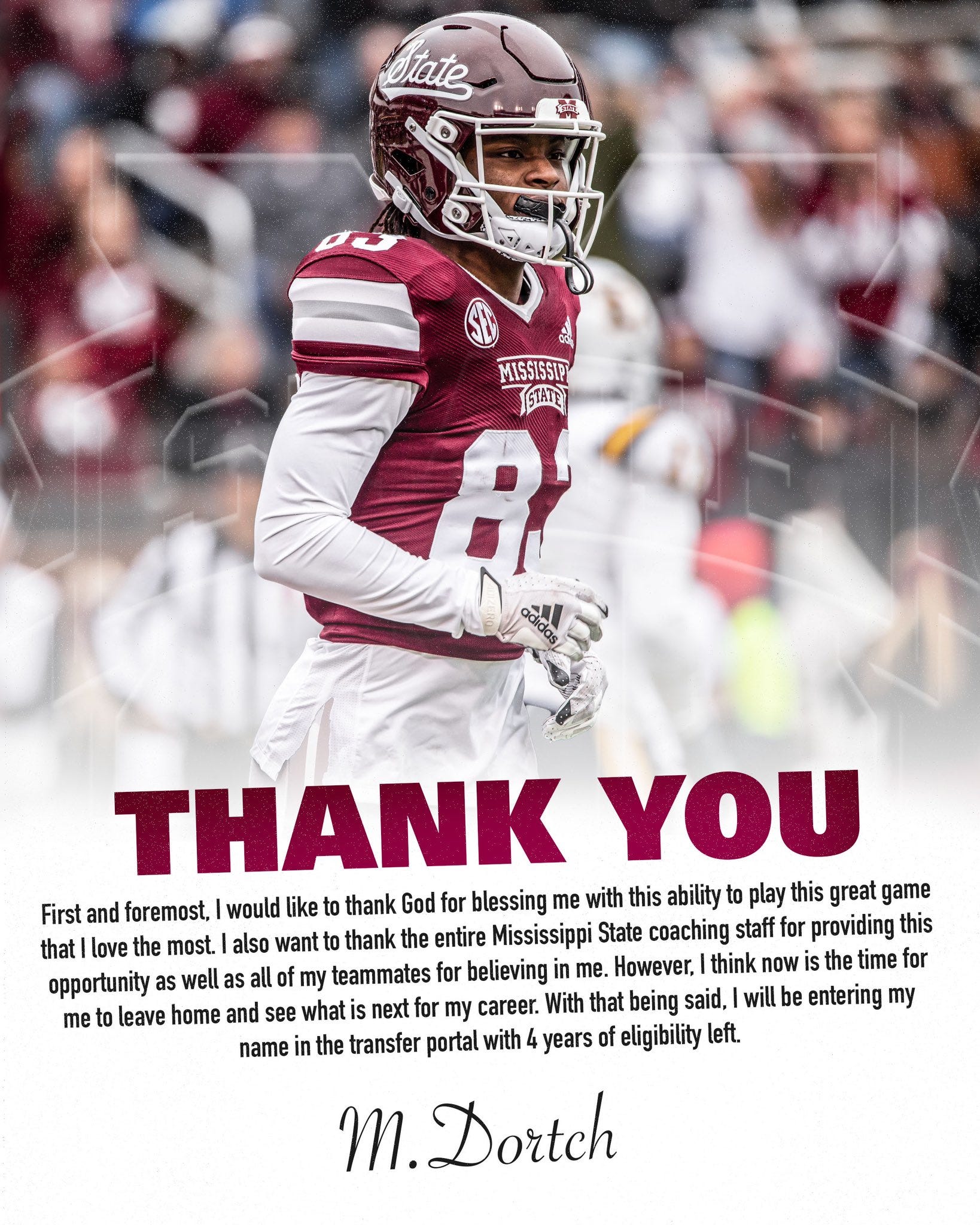 Dortch got offered by Cal recently and is on an official visit this weekend to Berkeley. He was recruited for the Air Raid with the Bulldogs and could be a good fit in the Air Raid. Dortch saw minimal action last year with Mississippi State, but this scouting report from 247Sports sounds promising.