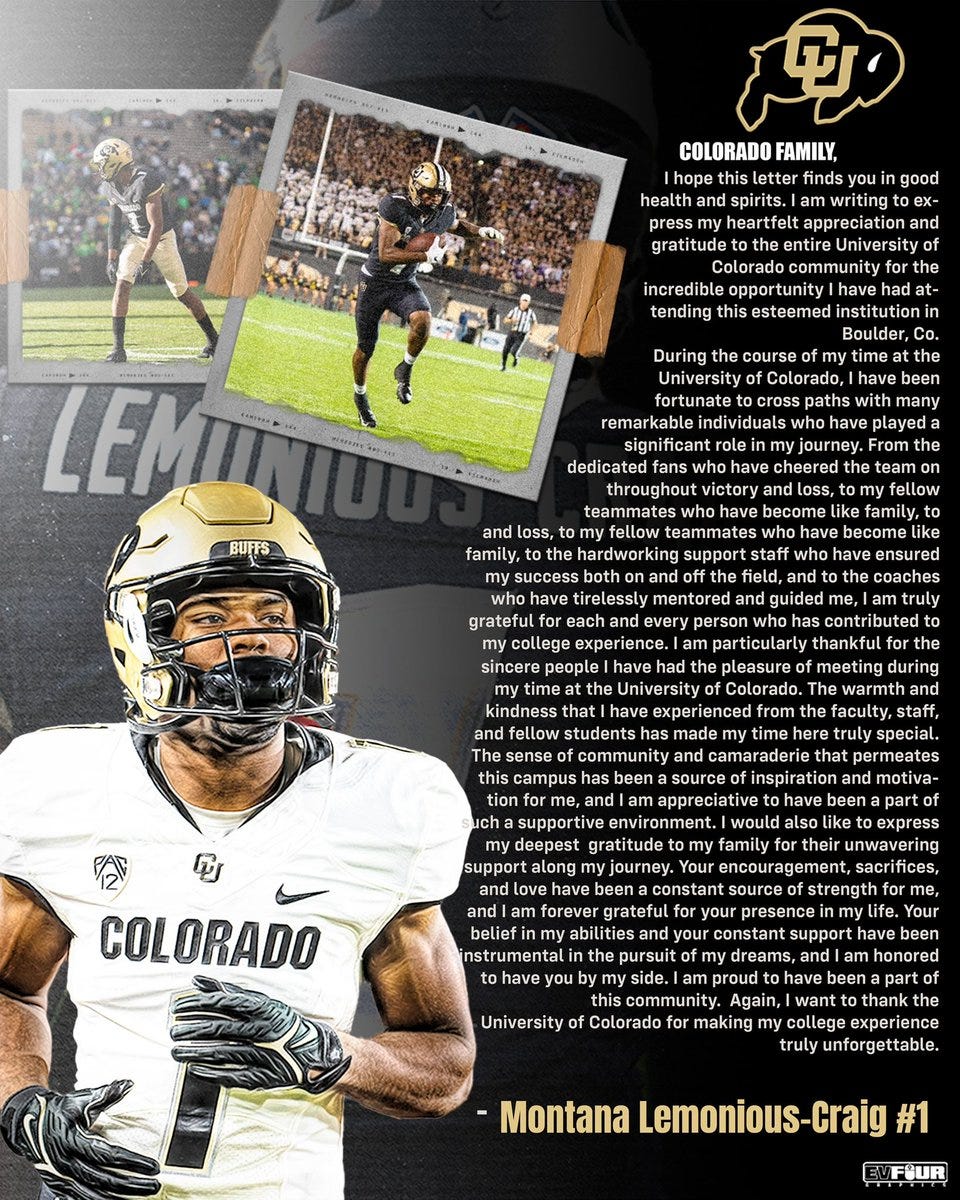Lemonious-Craig was one of many Buffs to enter the portal as Deion Sanders forcefully turned over their roster. He put up 23 receptions for 359 yards and three touchdowns last season, including the game-winning score for their only win against Cal.