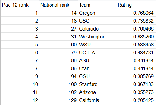In the Colley Matrix—which ranks teams purely based on their on-field results for this season—the Golden Bears have earned the unfortunate honor of being the lowest-ranked team in the conference.