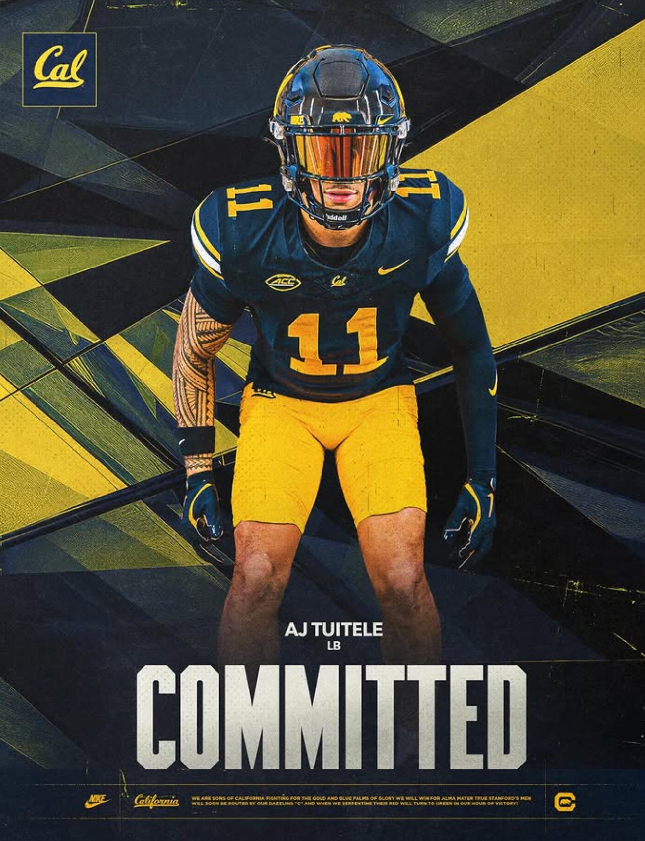 The California Golden Bears have been busy this long holiday weekend as the transfer portal winds down, and it culminated with a major coup from Southern California. Linebacker AJ Tuitele transferred from USC to Cal, and will bid for immediate playing time in the Cal linebacking corps.