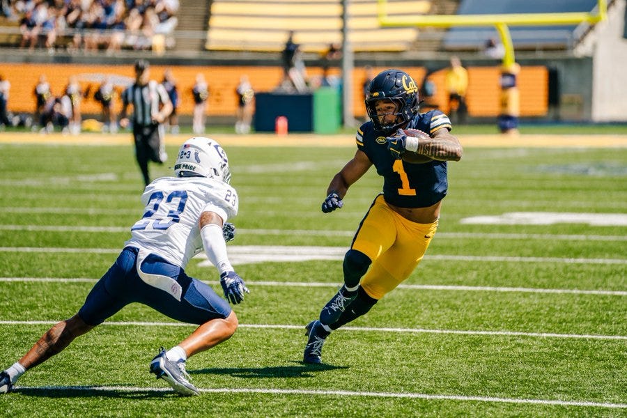 Cal was coming in flush with talent at wide receiver, with two starting transfer wide receivers in Kyion Grayes (Ohio State) and Tobias Merriweather (Notre Dame) slated to give the Bears the extra boost they needed. Neither played a snap on Saturday, causing concern about their long-term availability. Then Jonathan Brady was injured sometime in the first half, meaning three of four of Cal’s impact wide receiver transfers have uncertain statuses attached to them.