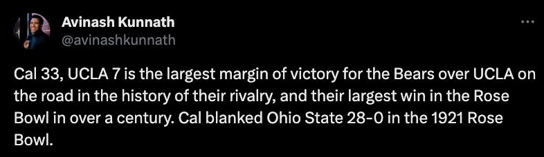 We’ve already mentioned Ott. After only being entrusted to kick four field goals in eight games, Mateen Bhagani nailed four field goals in Pasadena, including a 43-yarder to start the scoring. Lachlan Wilson boomed punts that placed UCLA at their 19, 12, and 5. The Bears then forced turnovers on all three possessions.